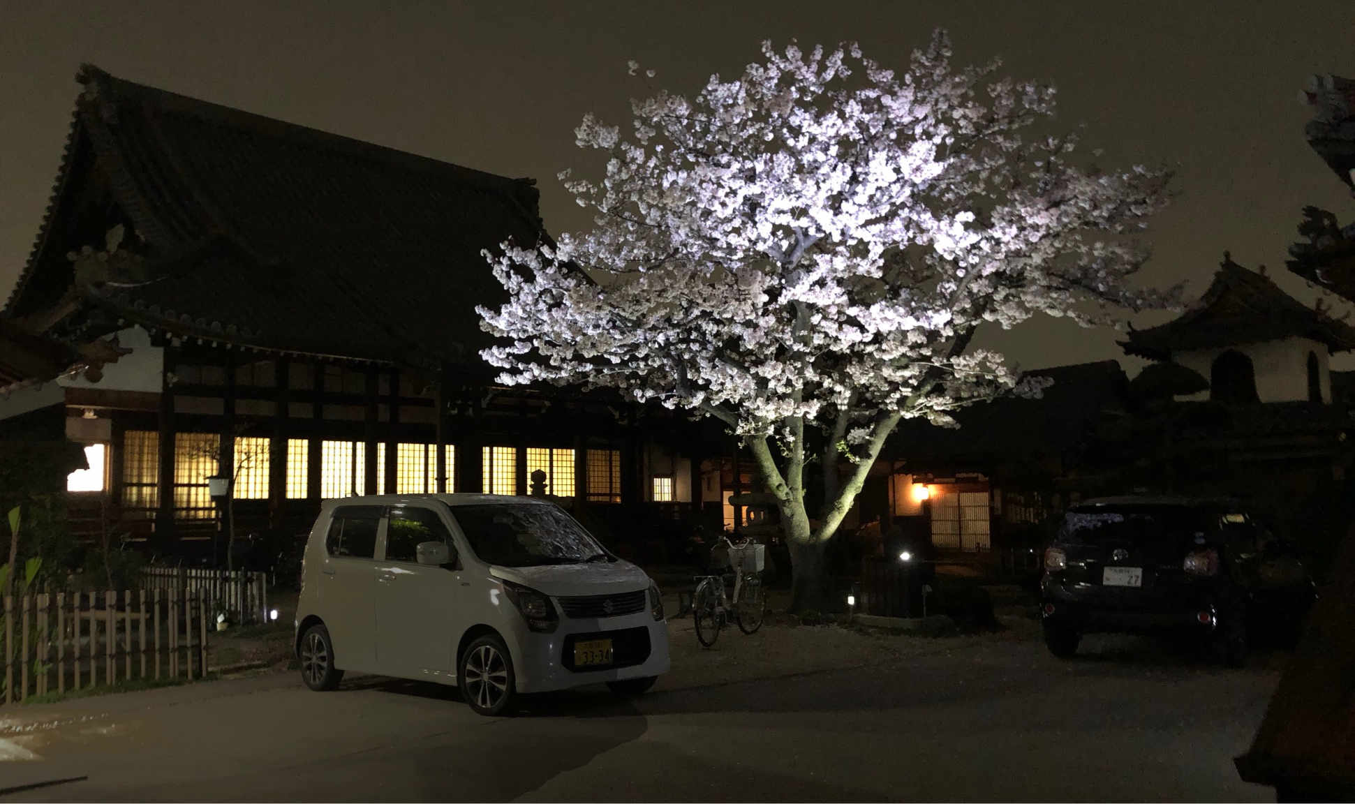 今年は、サクラが早くも満開です。ライトアップされたサクラが宙に浮いてるようですね。